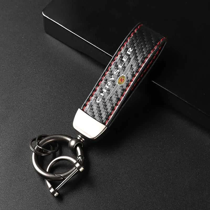 NEW Car Carbon Fiber Leather Keychain Horseshoe Buckle Jewelry for Chrysler 300c 300 200 200c Pacifica Sebring Car Accessories