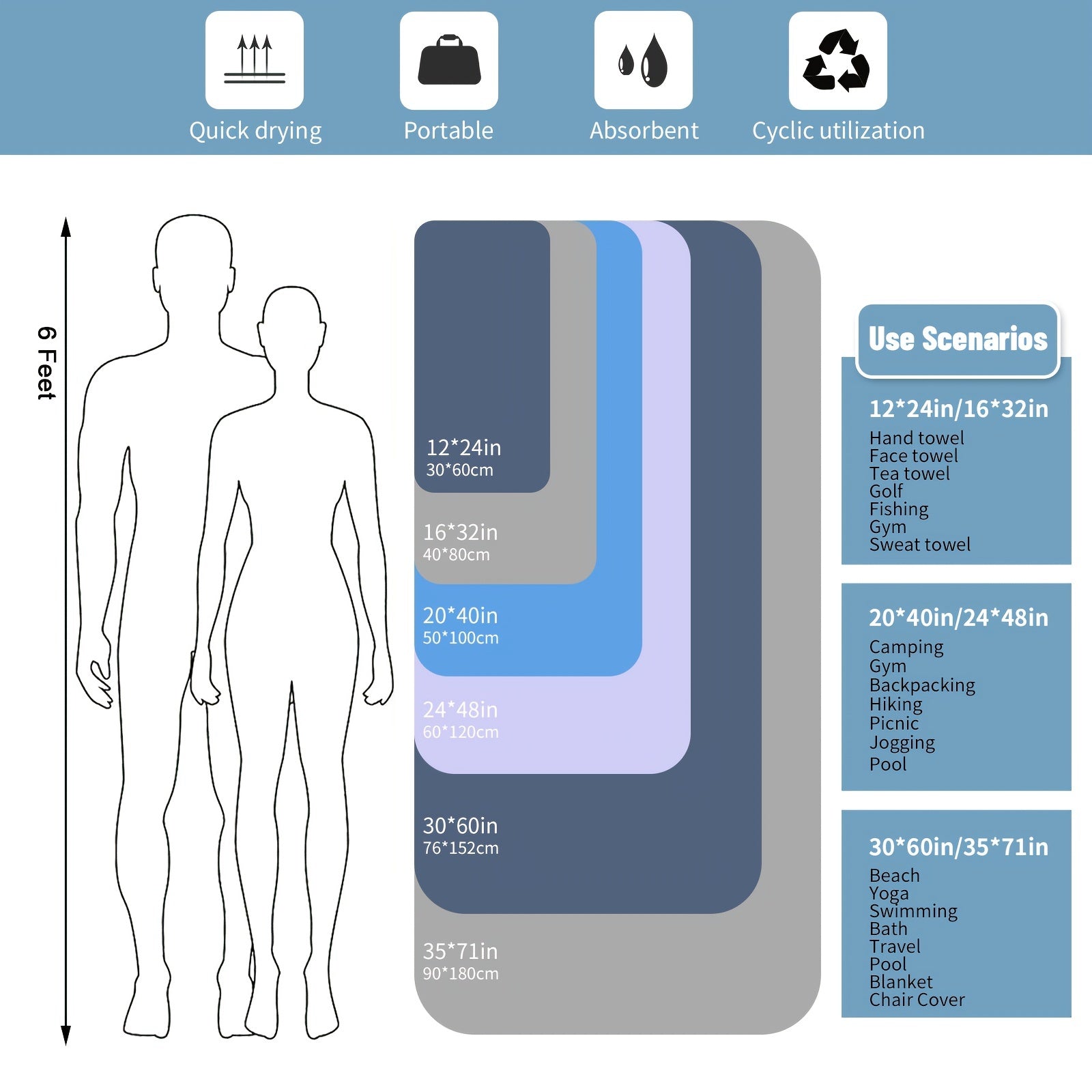 · Quick Drying: Made of high-quality microfiber material, this towel dries quickly, making it perfect for outdoor activities.